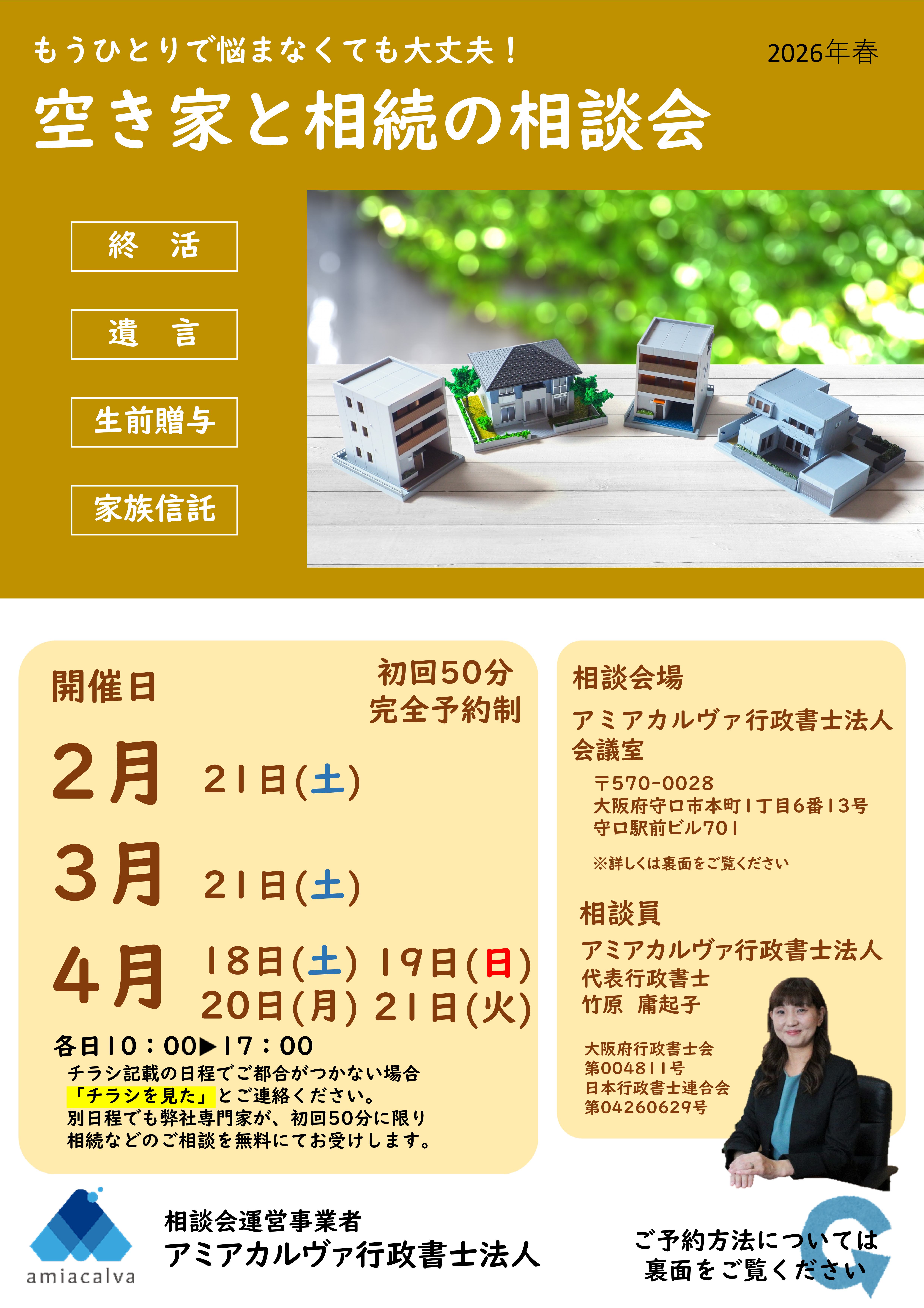 令和8年1月~4月 終活・相続・空き家相談会開催~アミアカルヴァ行政書士法人・アミアカルヴァ株式会社