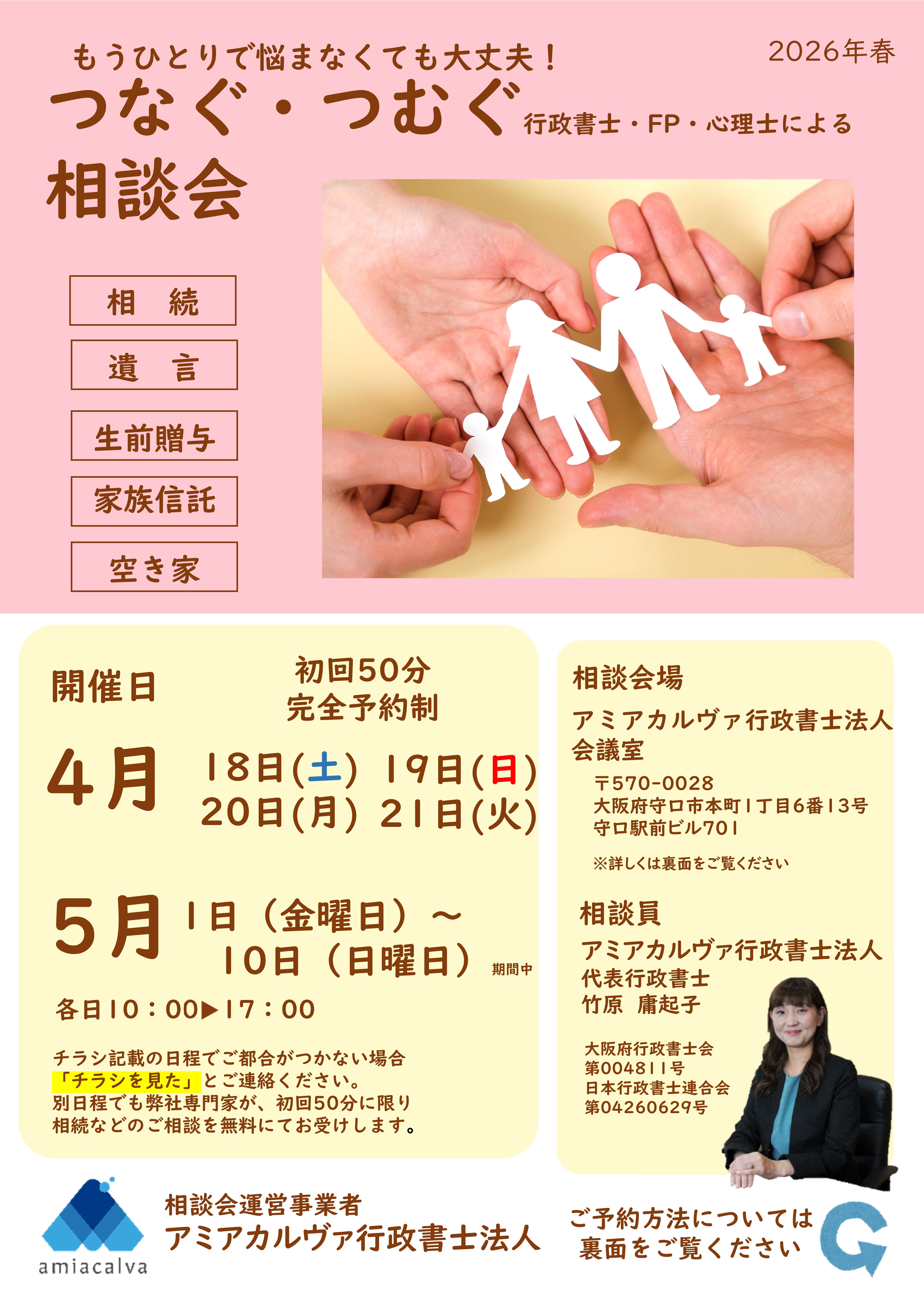令和8年4月~5月 つなぐ・つむぐ相談会(終活・相続・空き家相談会)開催~アミアカルヴァ行政書士法人